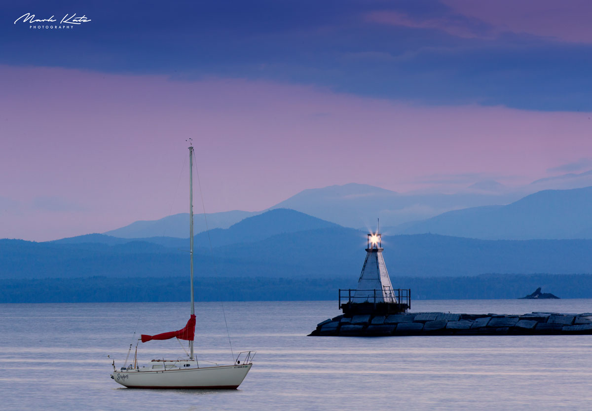 Sunset on Lake Champlain with the Adirondack Mountains in the background. Matted print fits into an 11x14" frame. Print is placed in a clear plastic sleeve to protect it from dust and scratches. More products related to this image can be found here: https://www.markkatzphotography.com/products/champlain-siren?_pos=1&_sid=e90ac9d53&_ss=r